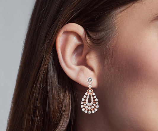 Aarohi 18K Rose Gold Diamond Dangle Earrings