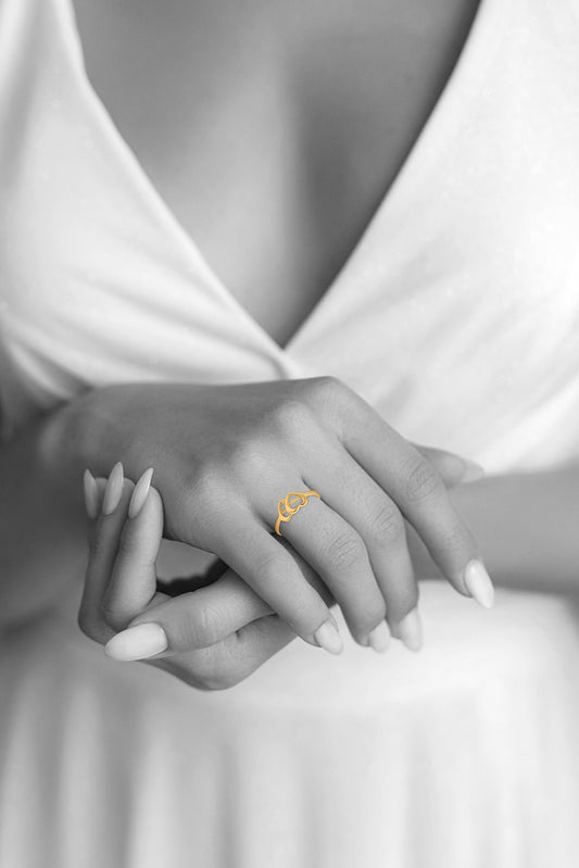 Golden Petal 22K Yellow Gold Dual Heart Ring