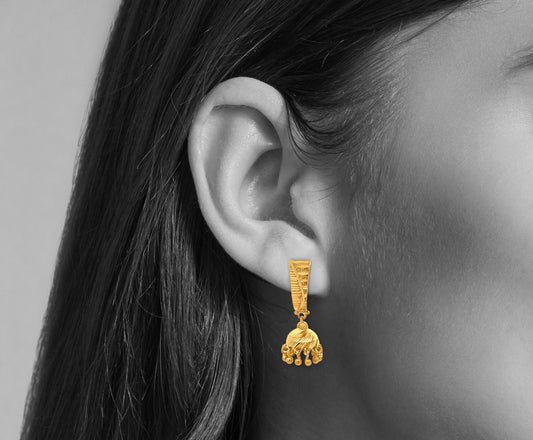 Aisha 22K Yellow Gold Minimalistic Jhumkas with Hanging Trinklets