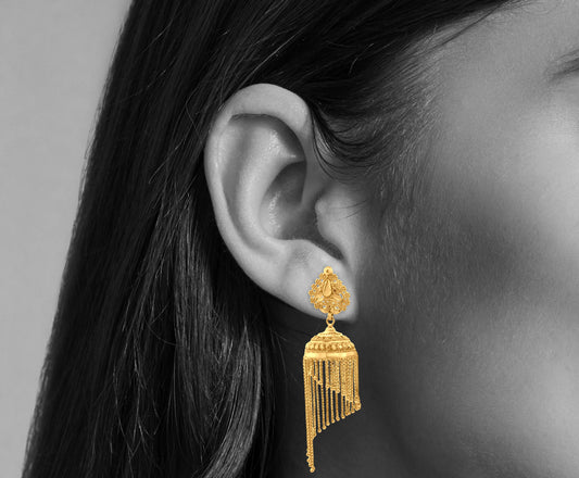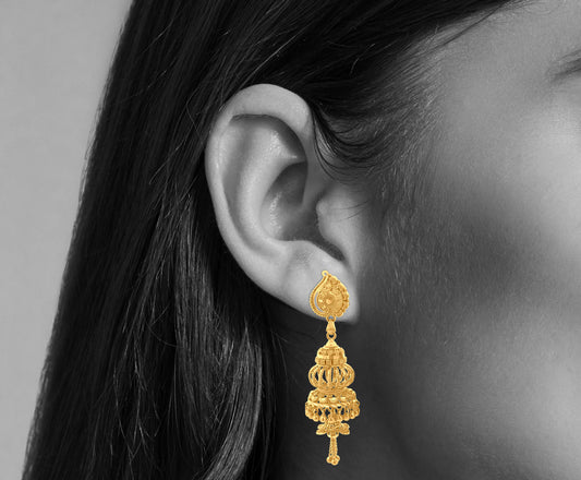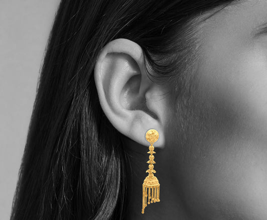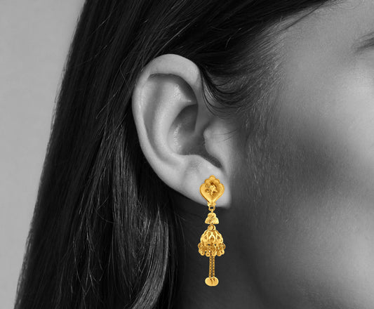 Anika 22K Yellow Gold Long Hanging Classical Jhumka Earrings