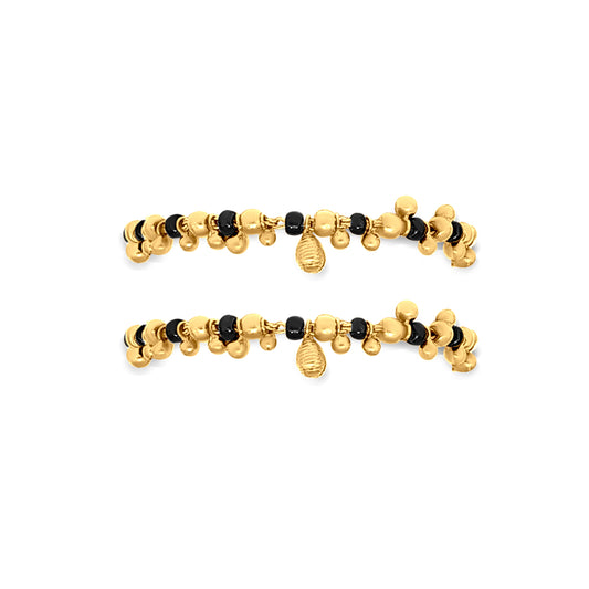 Shine Bright: 22k Yellow Gold Trinkets Bracelet with Evil Black Beads
