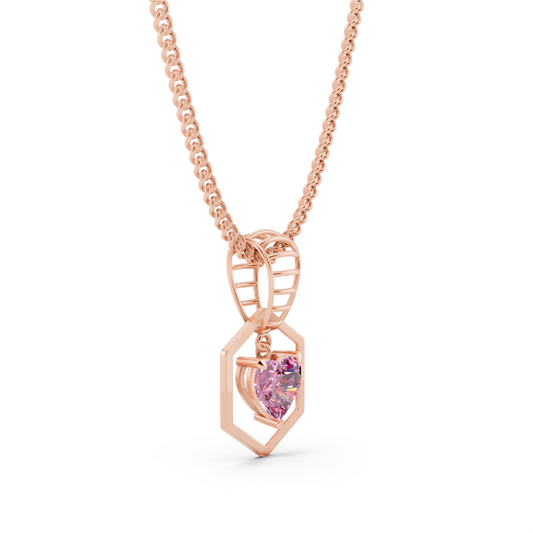 Roohani-14K Rose Gold Minimalist Pendant with Pink Heart Gemstone