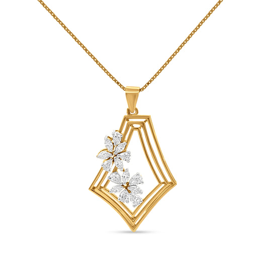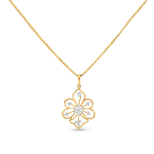 Prakriti Set: 18k Yellow Gold Diamond Floral Pendant Set