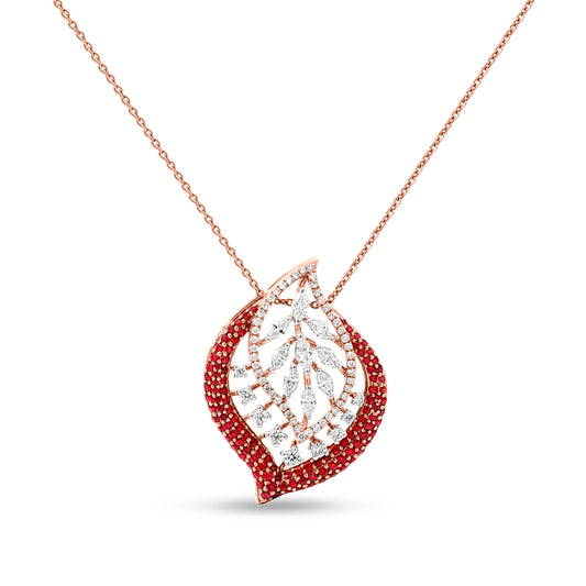 Agni Rasa Blaze: 18k Rose Gold Burning Flame Diamond Earrings and Pendant Necklace Set