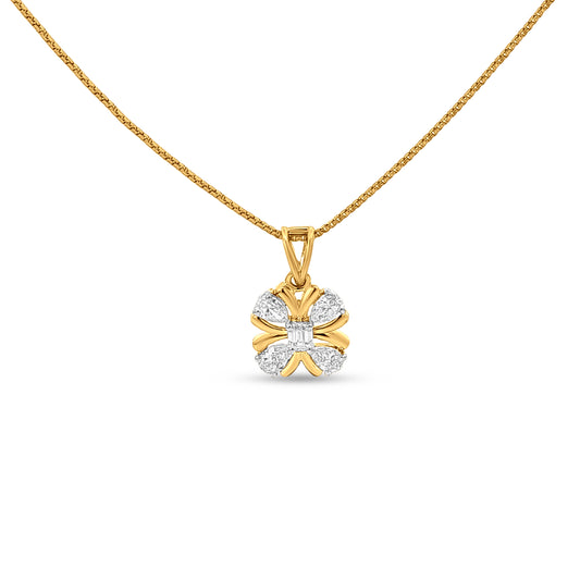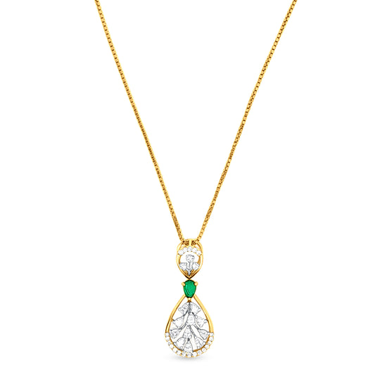 Pankhaara Harmony: 18k Yellow Gold Pan Leaves Diamond Pendant Necklace Set