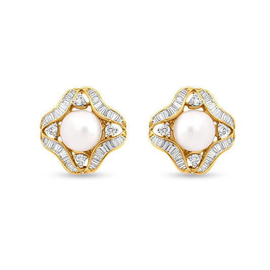 Moti Meenakshi Ensemble: 18k Yellow Gold Pearl and Baguette Diamond Pendant Set