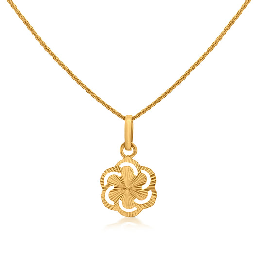 Flora Radiance: 18k Yellow Gold Floral Pendant & Earring Set