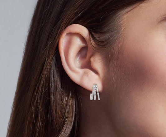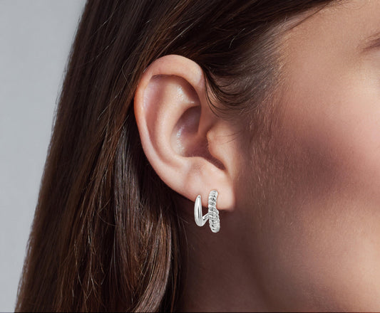 Tara's Boho Tribal Sterling Silver Zircon J Hoop Earrings