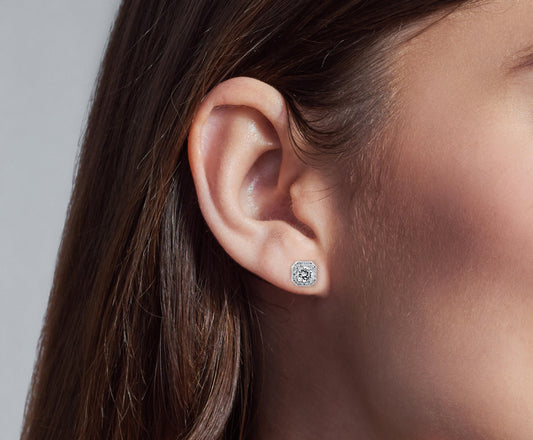 Riya's Everyday Diamond Halo Sterling Silver Stud Earrings
