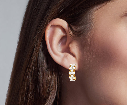 Amaira J Hoop Earrings - Yellow Gold Over Silver with Pearls