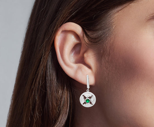 Rhea Drop Earrings - Sterling Silver Earrings with Green Stone