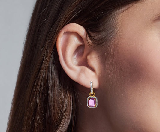 Avni Huggie Hoop Earrings - Sterling Silver with White Charm Drop