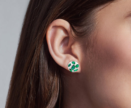 Tara Dome Stud Earrings - Sterling Silver Earrings with Green Stones