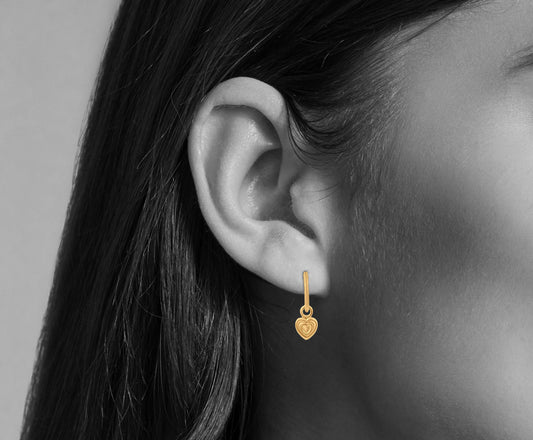 Kamini Huggie Hoop Earrings - Yellow Gold Over Sterling Silver with Heart Charm