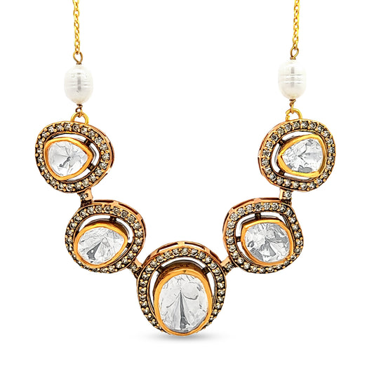 Amruta's 925 Silver Long Kundan Pendant with Pearls and Stone Trinkets