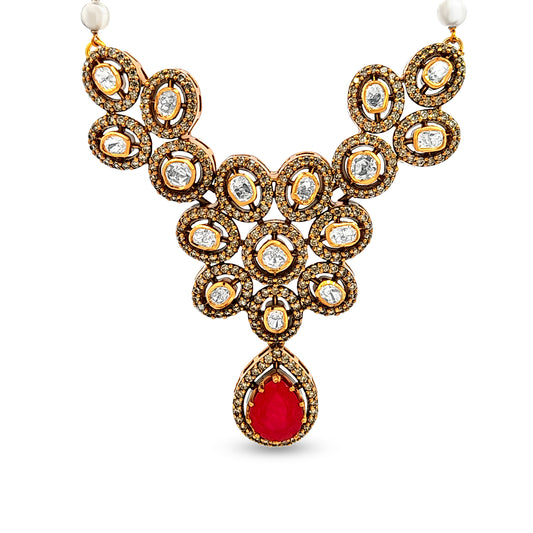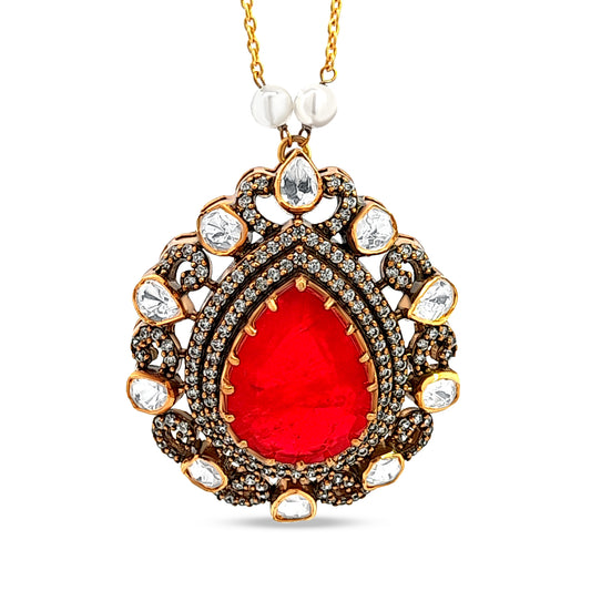 Vaishnavi's 925 Silver Kundan Pendant with Pear-Shaped Red Stone