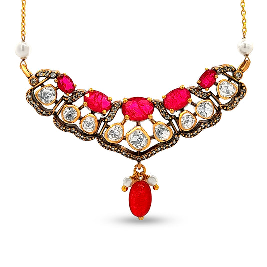 Sharvani's 925 Silver Kundan Pendant with Semi-Precious Red Stone