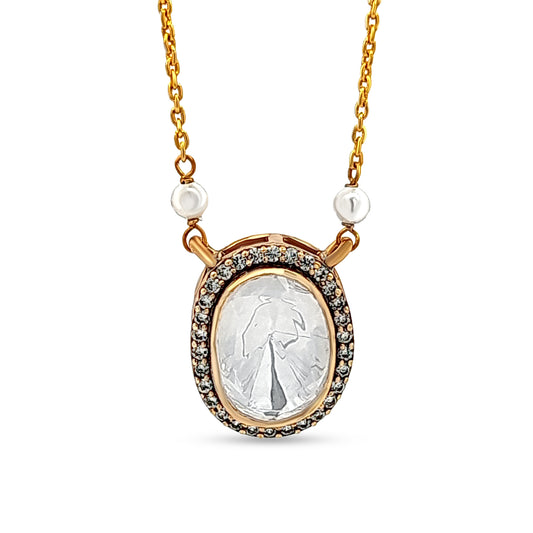 Bhavya's 925 Silver Oval Kundan Pendant with Zircon Halo and Chain