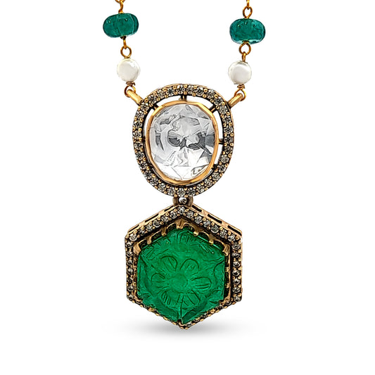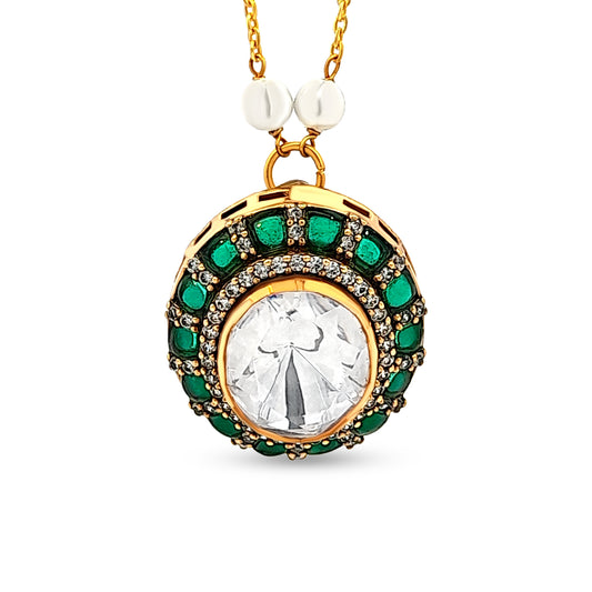 Anushree's 925 Silver Kundan Halo Pendant With Stunning Green Stones