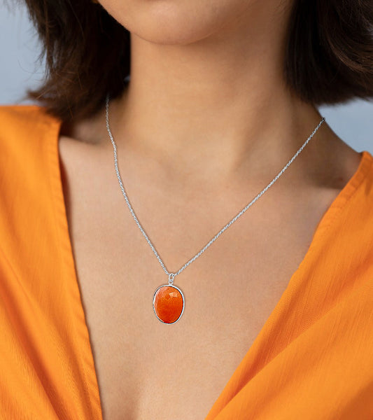 Kumudika Glow: Sterling Silver Pendant with Orange Semi-Precious Stone