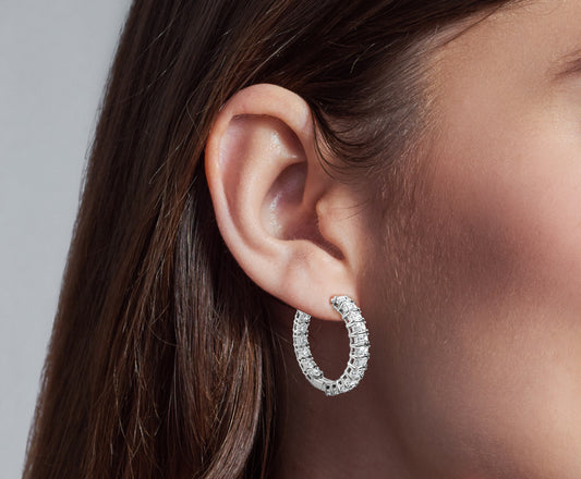 Ishita - 14K White Gold Emerald-Cut and Round Lab-Grown Diamond Hoop Earrings