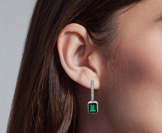 Harini - 14K White Gold Lab-Grown Diamond and Emerald Earrings