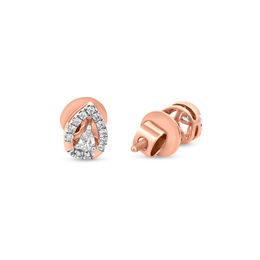"रेडिएंट टियर्स": नाशपाती और गोल कट हीरे के साथ 18k गुलाब सोने की टियर ड्रॉप स्टड इयररिंग