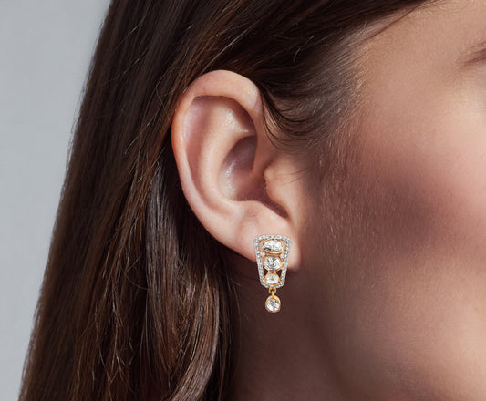 Sampriti - 18K Yellow Gold Diamond and Polki Earrings