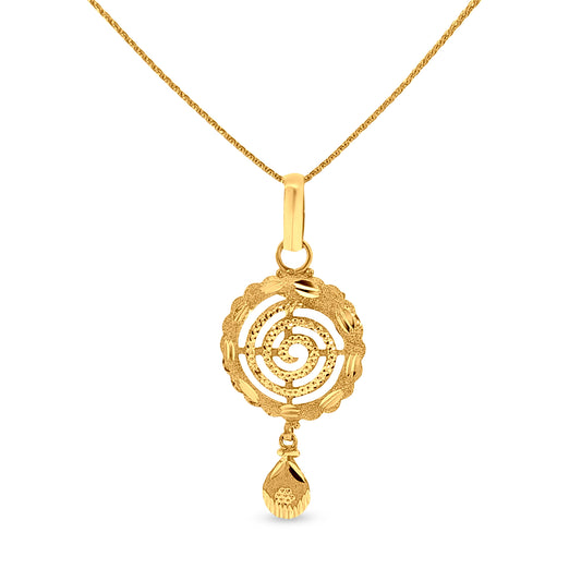 स्वर्ण कमला: 22K पीला सोना घुमावदार गोल पेंडेंट और बाली सेट