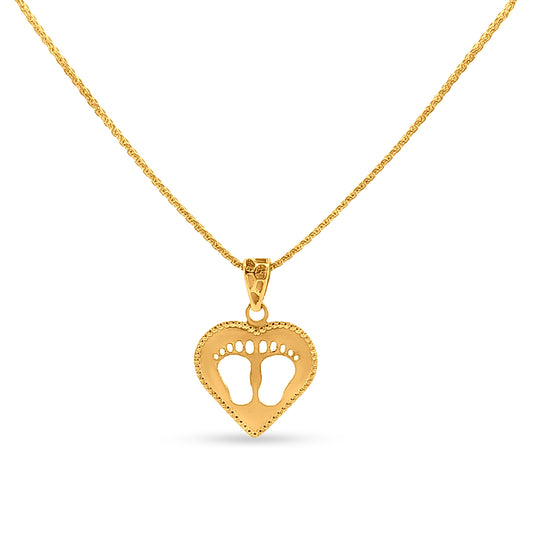22K पीला सोना बेबी फुट हार्ट पेंडेंट और इयररिंग सेट